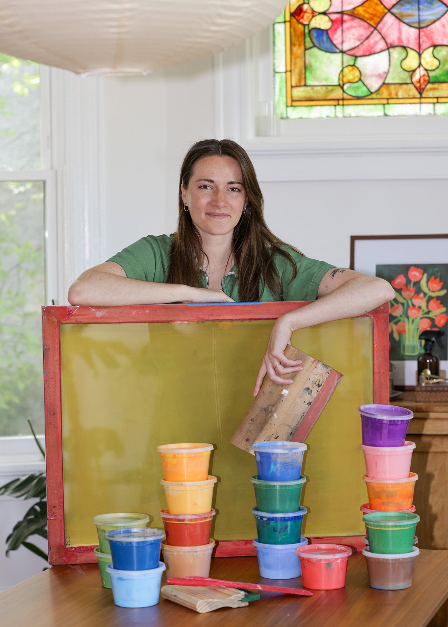 Screenprinting (also known as silkscreen printing or serigraph printing) is an ancient process that originated in China to transfer designs onto fabric. Images are created by pushing ink through a kind of stencil burned into a screen. Ink colors are mixed and layered one by one to create the final design. It was intended as a way to create multiples — but each print is always an original! There are always small traces of the artist's hand in the process. All my prints are signed and limited edition.