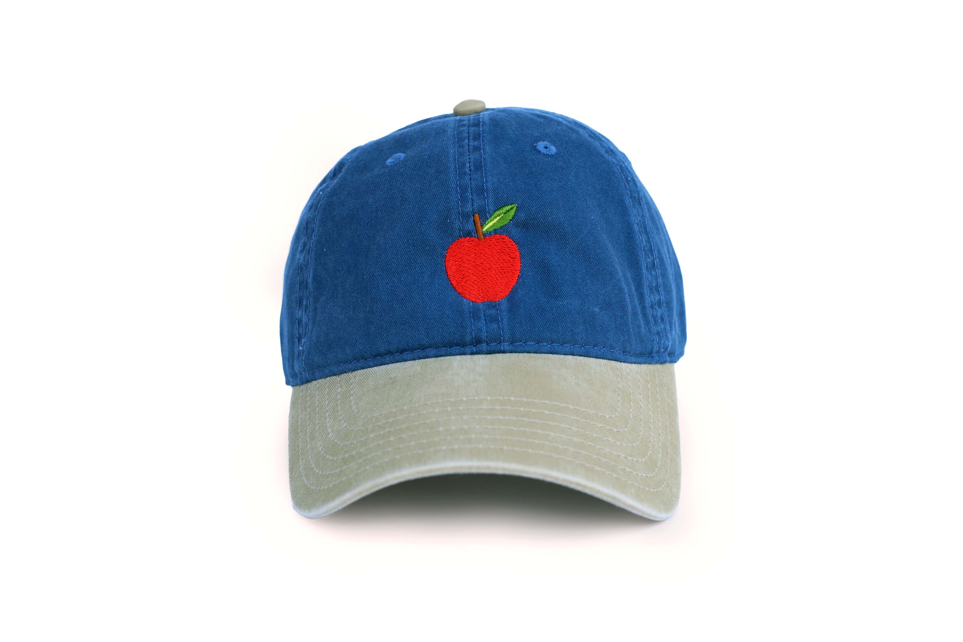 The most beautiful apple picked right off the tree, just for you. Whether you're roaming around an orchard, going back to school, or manifesting fall year-round, this hat will spice up any outfit. Shown here in vintage blue and tan. Also available in vintage gray, mustard, stone gray and green.