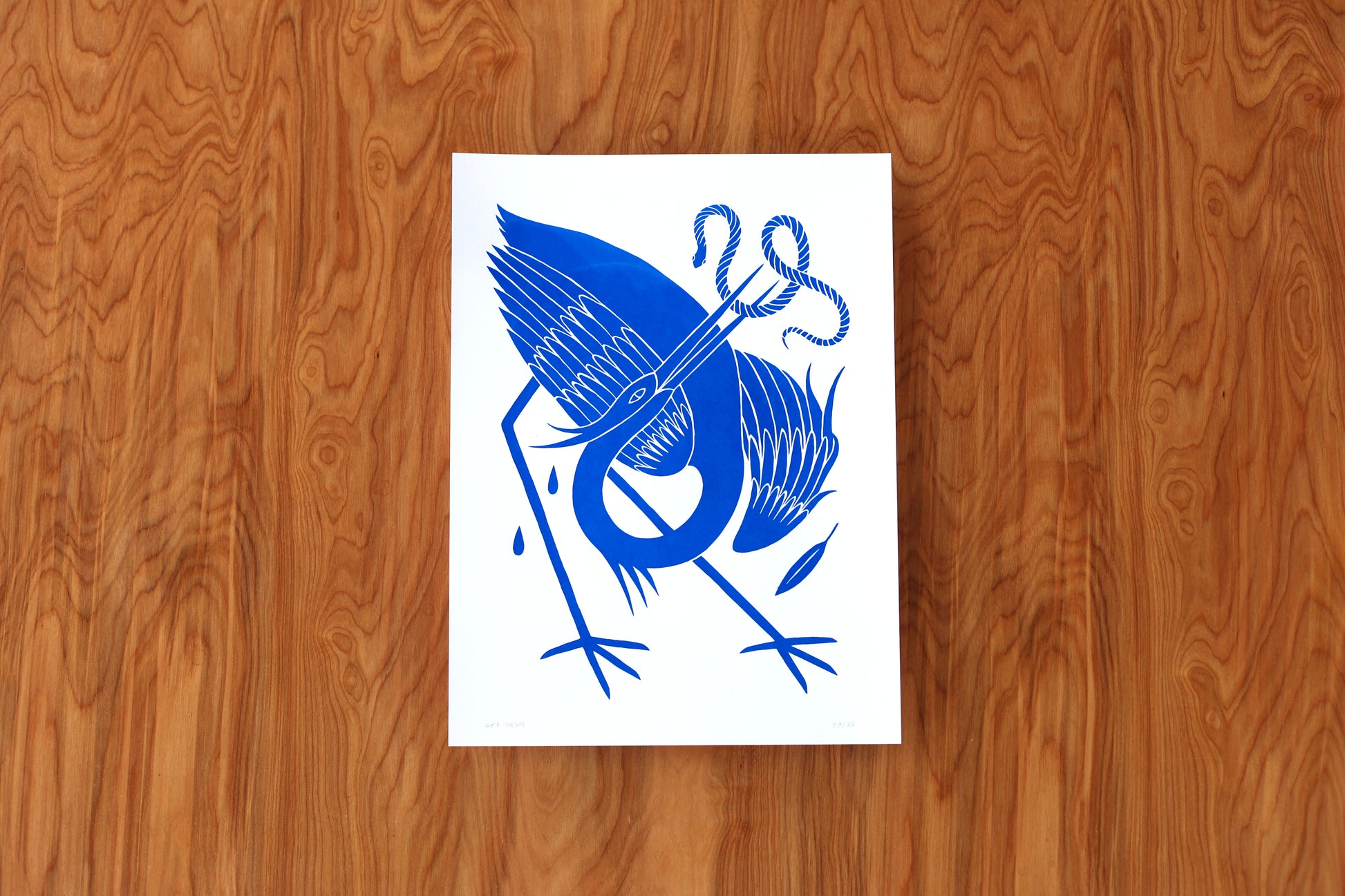 Blue Heron is a 12" x 16" limited edition print made with pure cyan ink. It's the bluest blue!