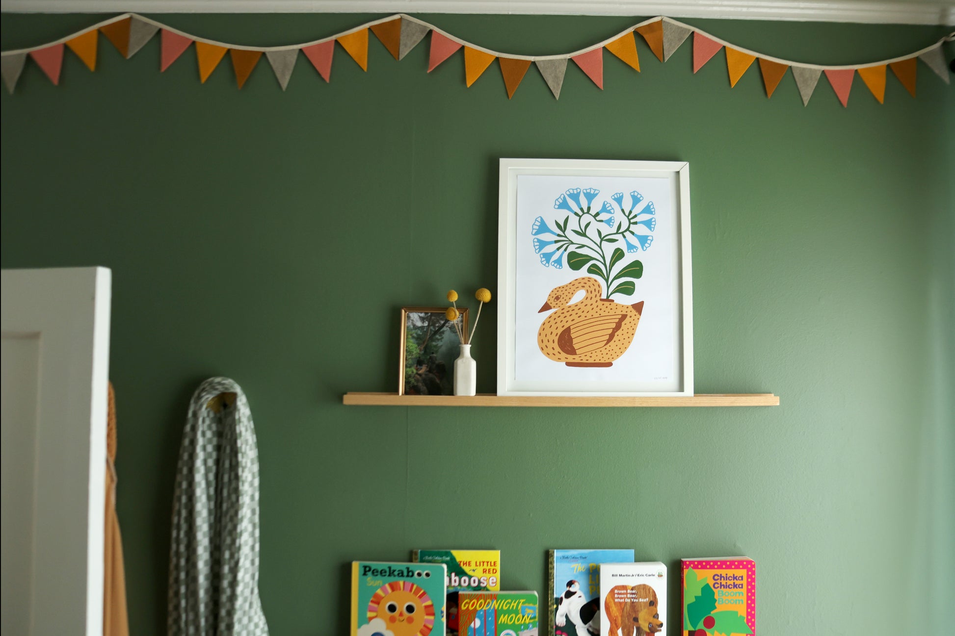 Bluebell Goose is a 12" x 16" limited edition print that will brighten up any space — whether it's a gallery wall or your favorite reading nook.