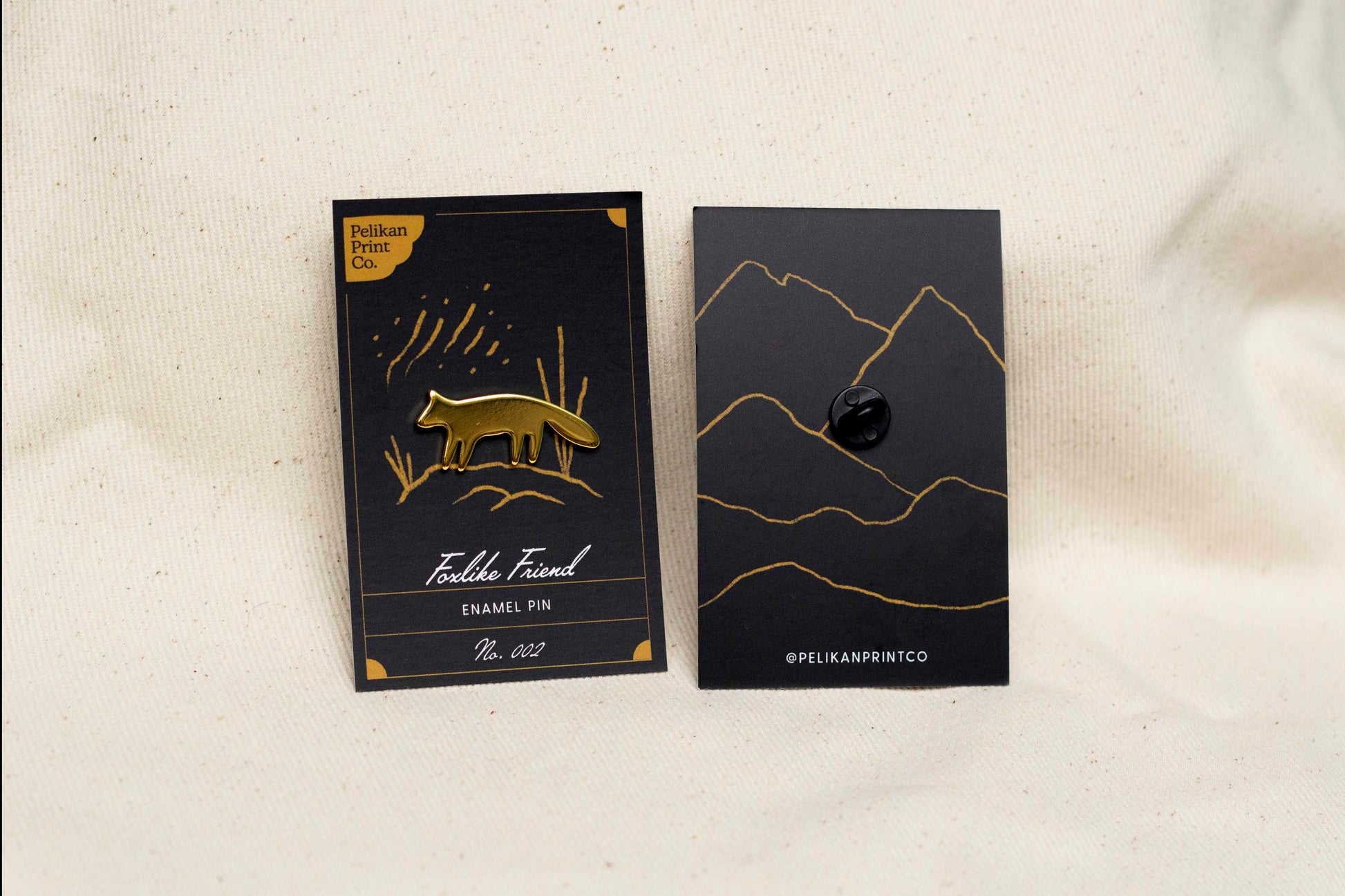 These minimalist pin designs are made to mimic jewelry in their simplicity. They are gold-finished metal with sturdy rubber backings, ready to go with you on all your adventures.